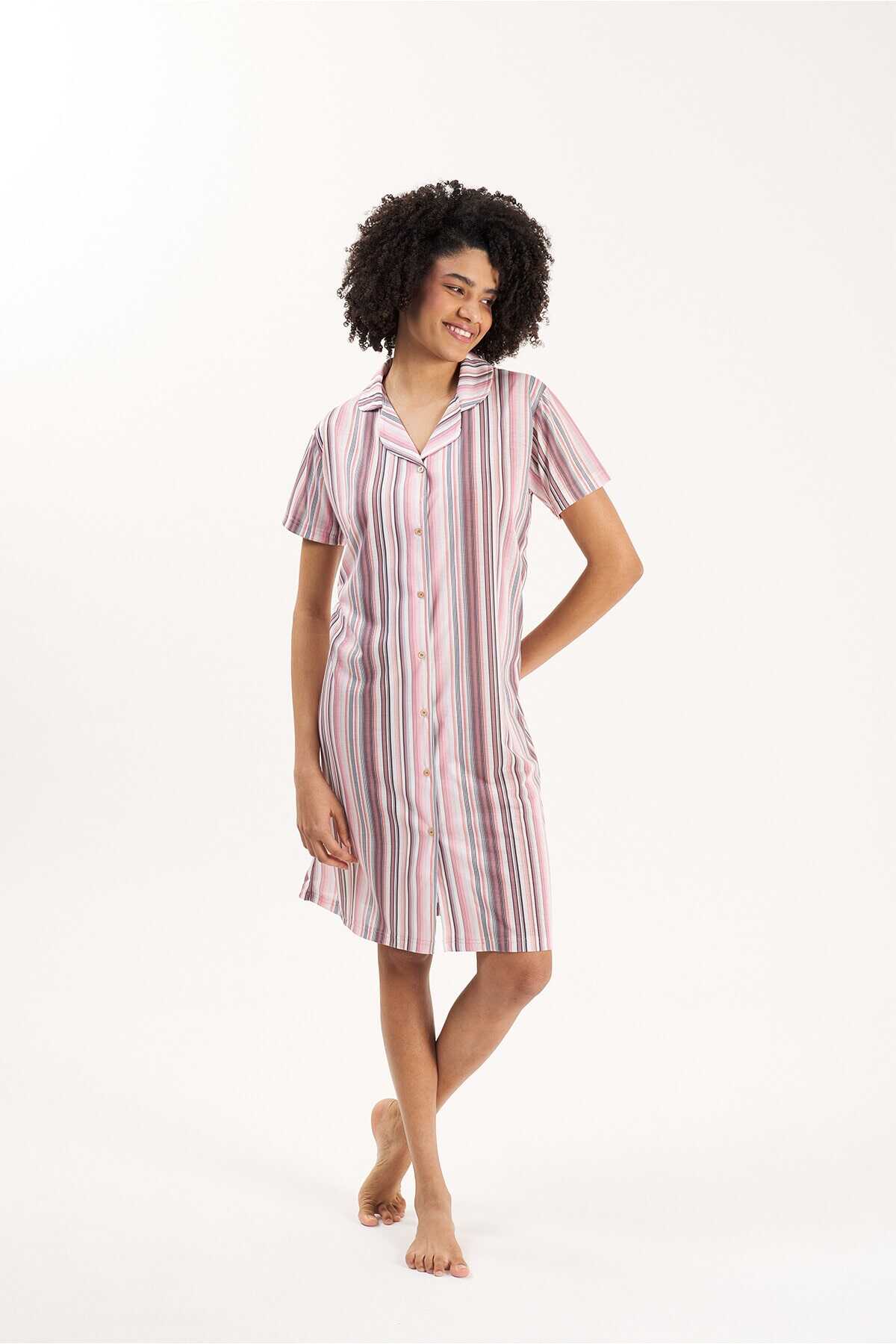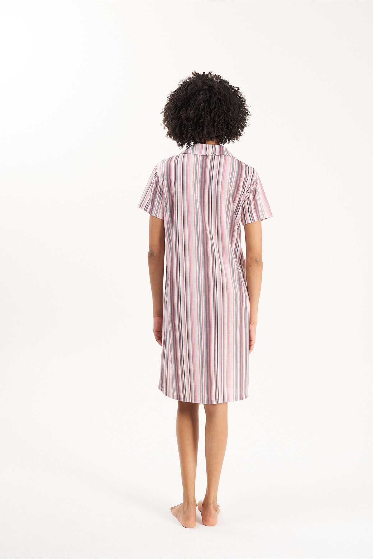 GÖMLEK YAKA ÇİZGİLİ VİSKON KADIN GECELİK