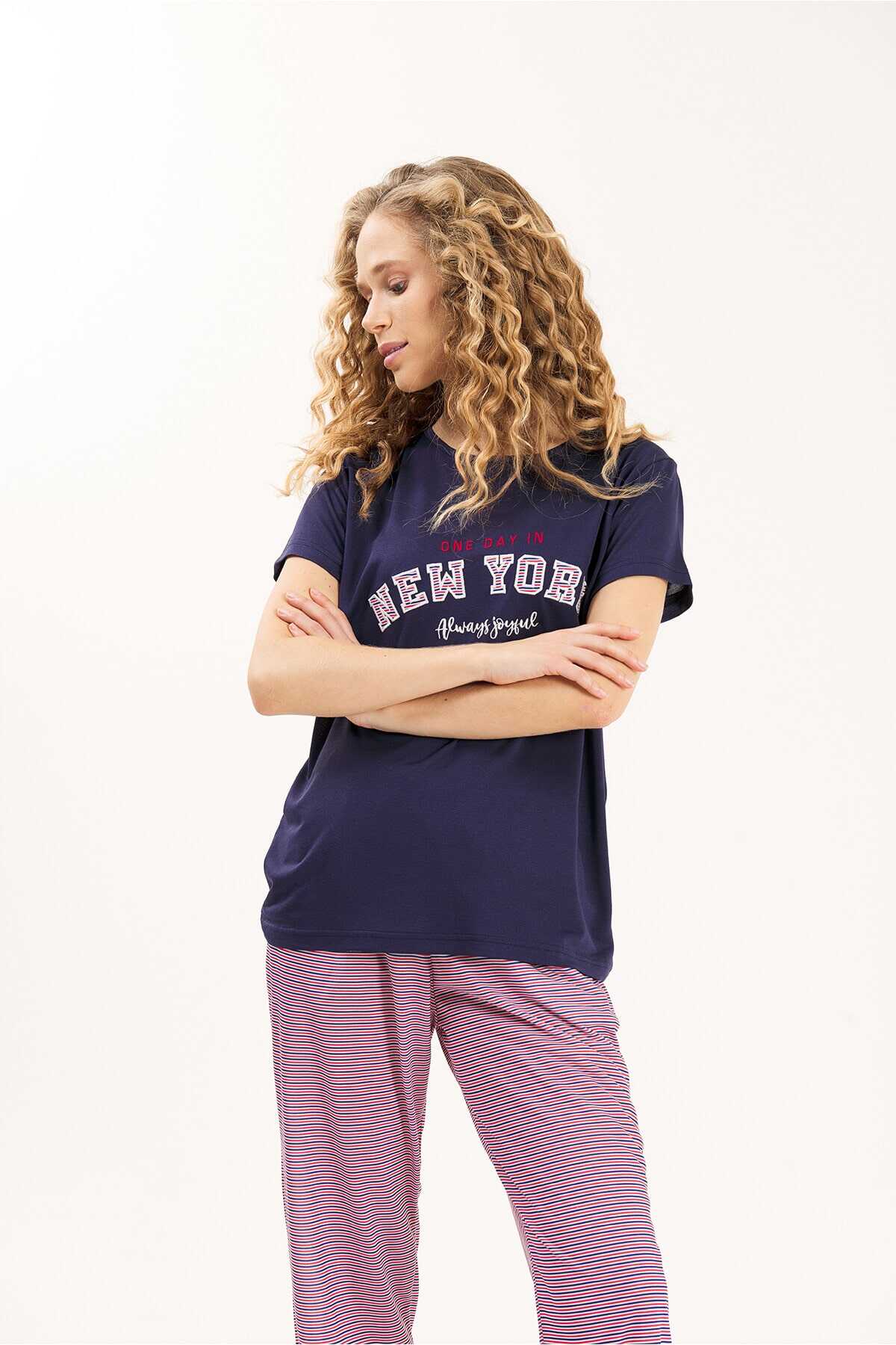 LACİVERT VİSKON 2'Lİ KADIN PİJAMA TAKIMI